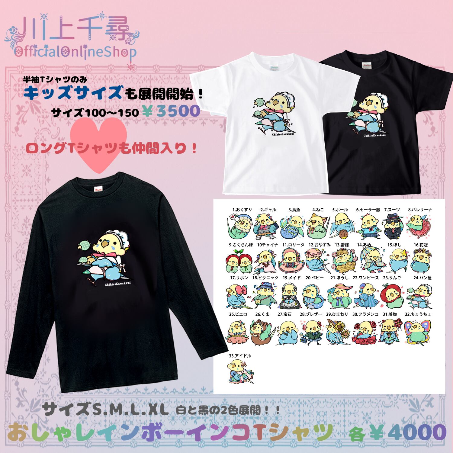 #川上家のインコたちでおなじみの「おしゃレインボーインコ」のイラストTシャツです。