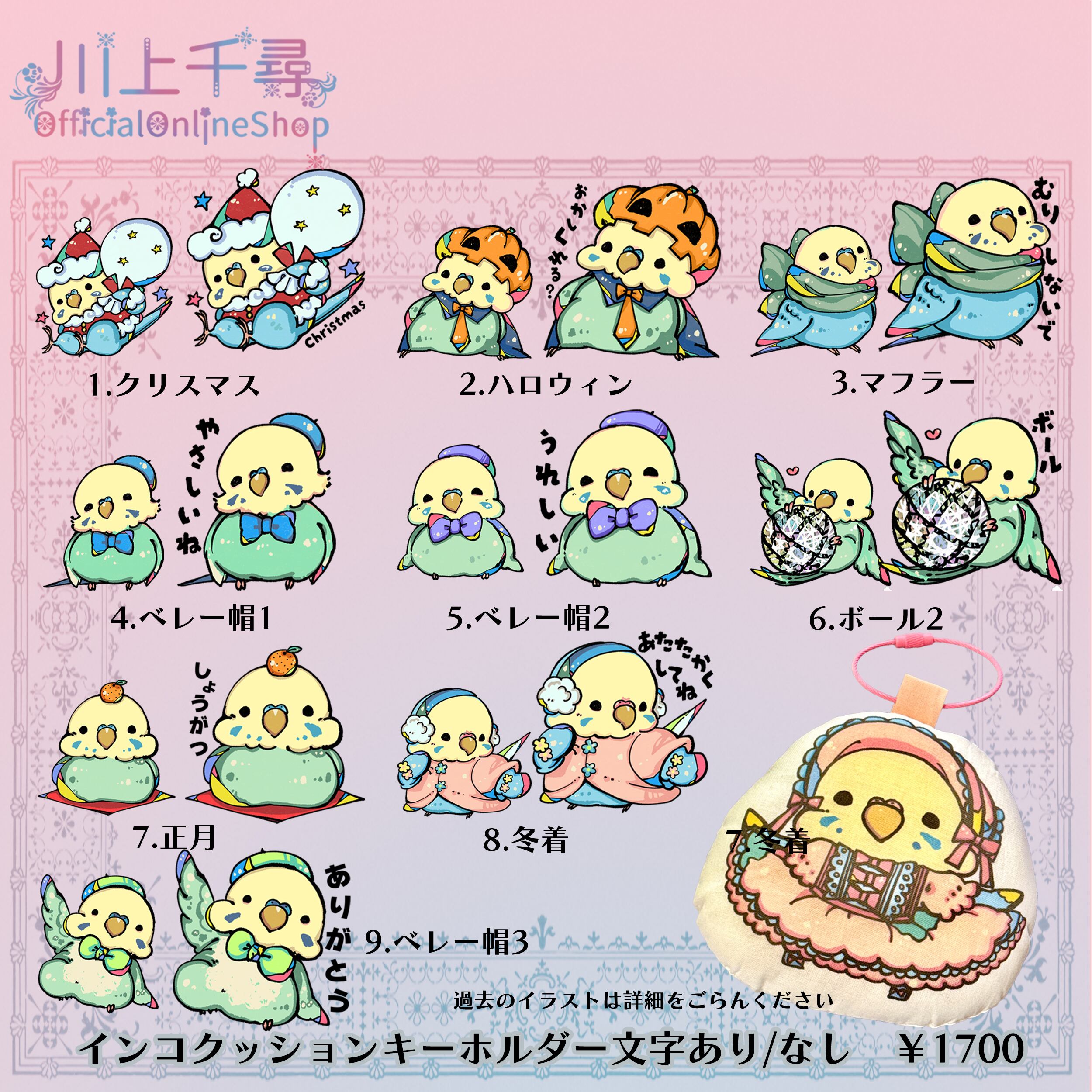 #川上家のインコたちでおなじみの「おしゃレインボーインコ」のイラストクッションキーホルダー第3弾!